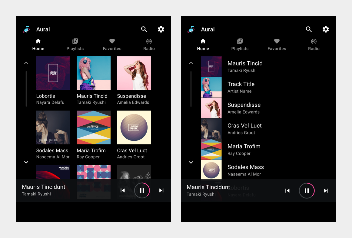 Figure 1. Media screen sample implementations.