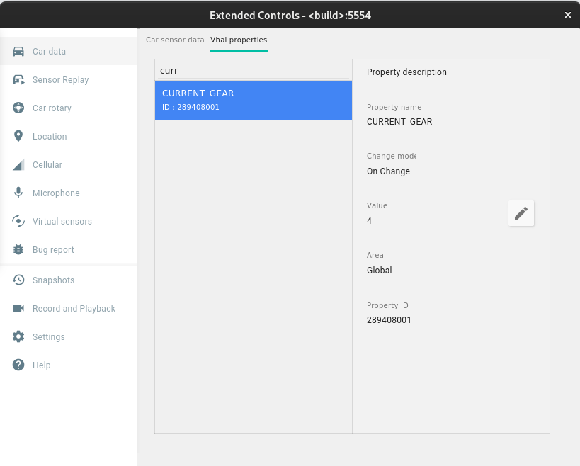 The Android Automotive OS (AAOS) contains common VHAL properties that can be viewed in an emulator's VHAL window. As a result, you can view an abundance of information about VHALs including names, descriptions, and the meaning of the values. The information is extracted from the metadata of VHAL properties, which is hard-coded into the QEMU emulator.