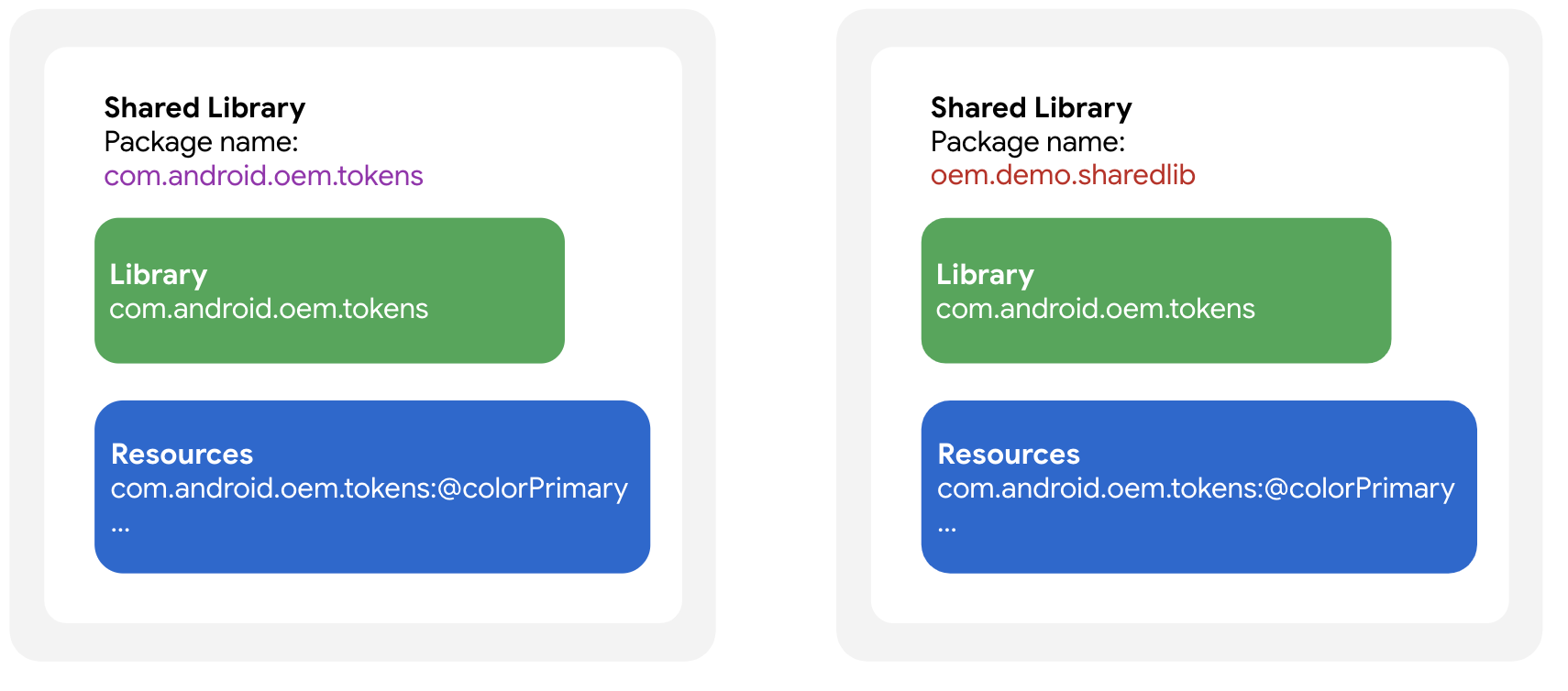To accommodate OEM ownership of this shared library component, including an OEM-defined package name, OEMs can create an override of the shared library implementation.
