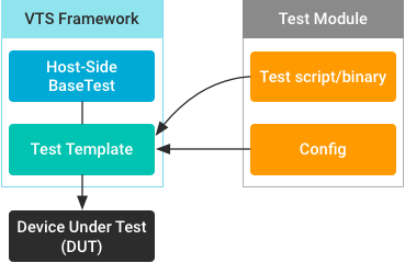 You can use templates directly in the test config to include non-Python tests or extend them in a subclass to handle specific test requirements. Templates in the VTS repo have the following extensions: